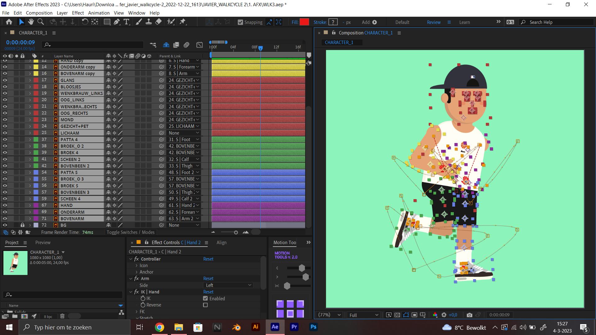 Tijdens mijn stage kreeg ik de uitdaging om een eigen karakter te ontwerpen en dit te animeren met behulp van een walk cycle. Bovendien moest ik vertrouwd raken met de tool "Duik Bassel", waar ik voorheen geen ervaring mee had. Deze opdracht bood niet alleen de kans om mijn animatievaardigheden te ontwikkelen, maar ook om nieuwe tools en technieken te leren binnen het vakgebied.