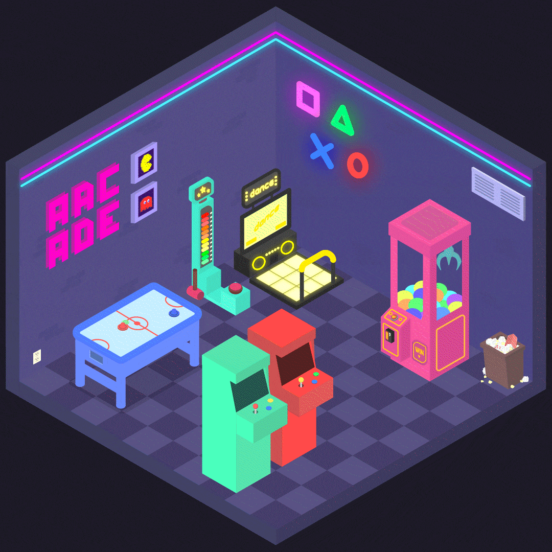 Tijdens mijn stage wilde ik de kunst van isometrische animatie beheersen. Ik begon met het leren van de basisontwerpen en de opbouw van isometrische composities. Na het begrijpen van de fundamenten heb ik mijn eigen creativiteit ingezet en een isometrische animatie van een arcadehal gemaakt. Deze opdracht bood niet alleen de mogelijkheid om nieuwe technieken te leren, maar ook om mijn persoonlijke touch aan het project toe te voegen.